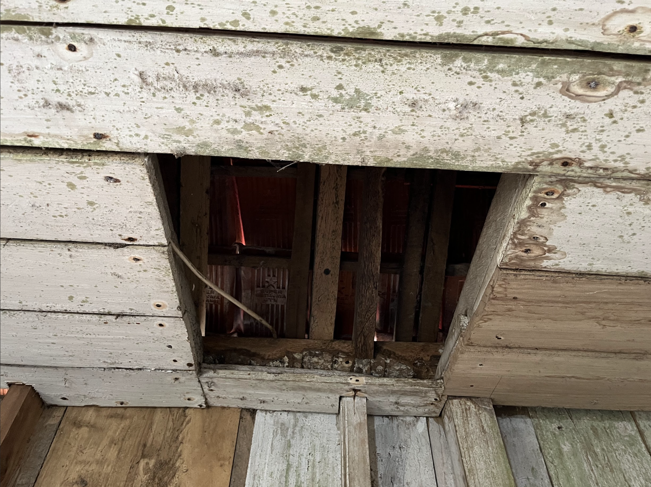 Masjid ini berdiri sejak 2012 dengan bangunan kayu seadanya. Kini kondisinya semakin parah: dinding penuh lubang, atap bocor, dan kayu rapuh yang sewaktu-waktu bisa ambruk. Warga tetap salat di sana, meski harus menanggung risiko bahaya setiap harinya.