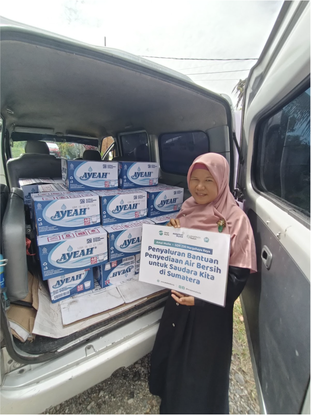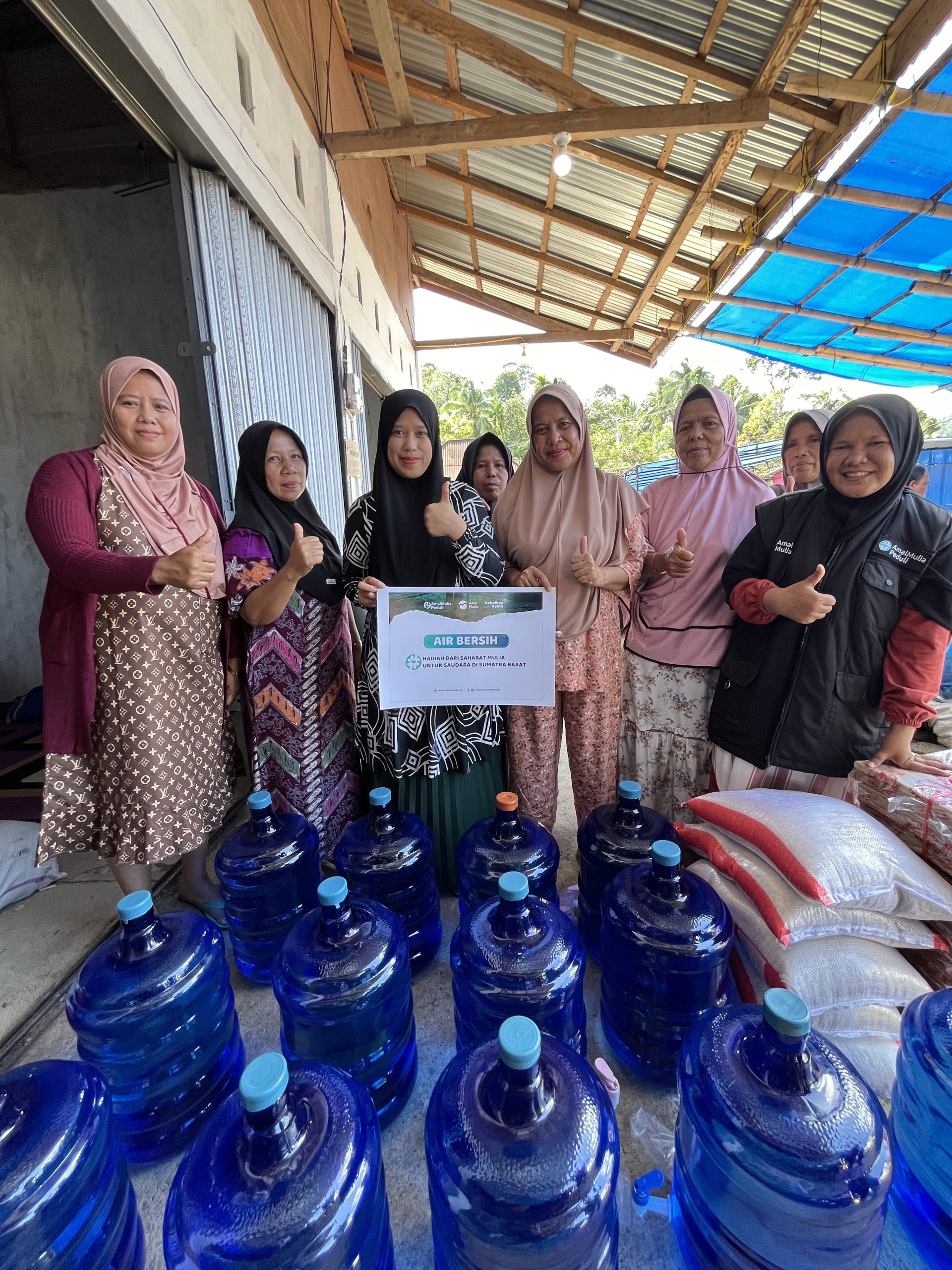Tim Amal Mulia menyalurkan bantuan air bersih kepada 240 Kepala Keluarga. Penyaluran dilakukan melalui SDN 230 Margahayu Raya yang turut menjadi bagian dari ikhtiar kebaikan ini. Air bersih menjadi kebutuhan yang sangat krusial karena banyak sumber air warga tercemar pascabanjir.